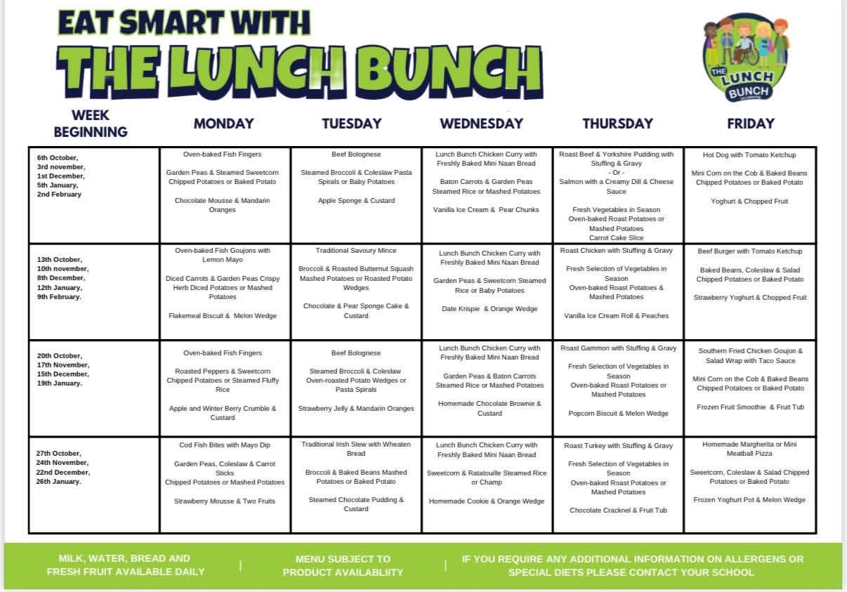 If You Require Any Additional Information on Allergens or Special Diets Please Contact the School to complete a Special Diets Application Form